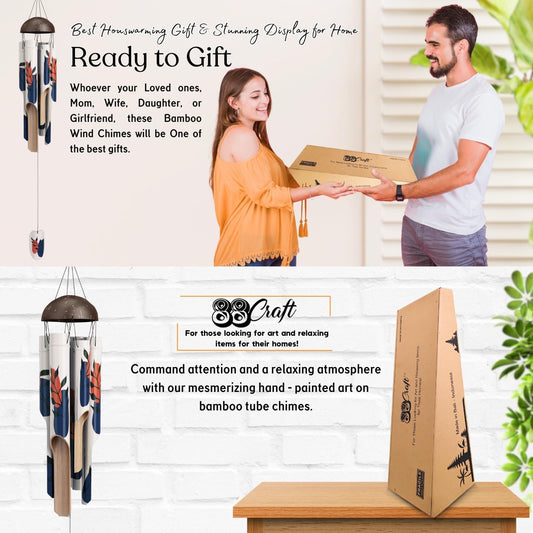 Bamboo Wind Chimes 45" Hand Painted Art Garden Decor Housewarming